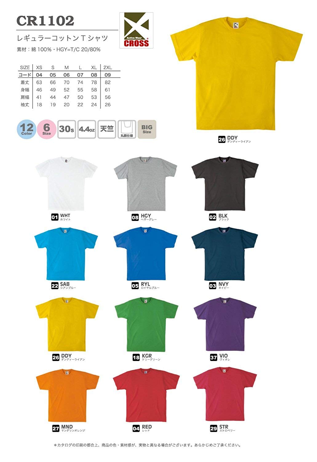 CROSS 4.4オンス レギュラーコットンTシャツ